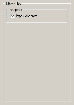 | Import chapters | Select whether or not chapters from input matroska files are imported as well, or if they are ignored |