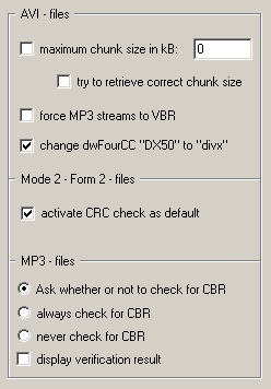 | never check for CBR | Every MP3 file is treated as VBR. This will increase overhead for AVI files when using MP3 CBR sources |